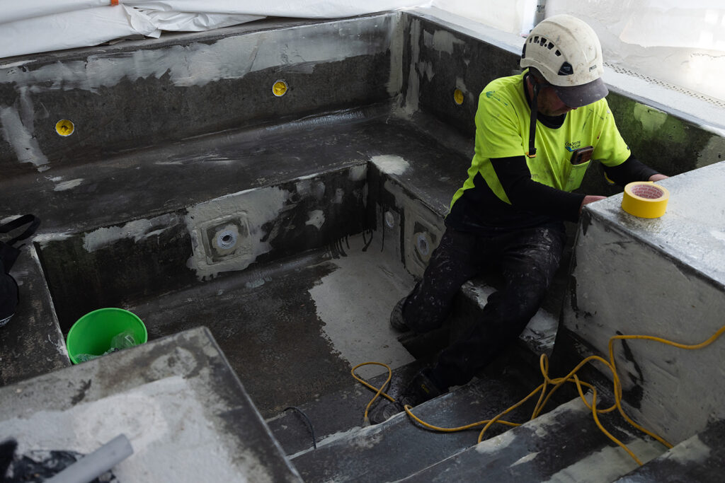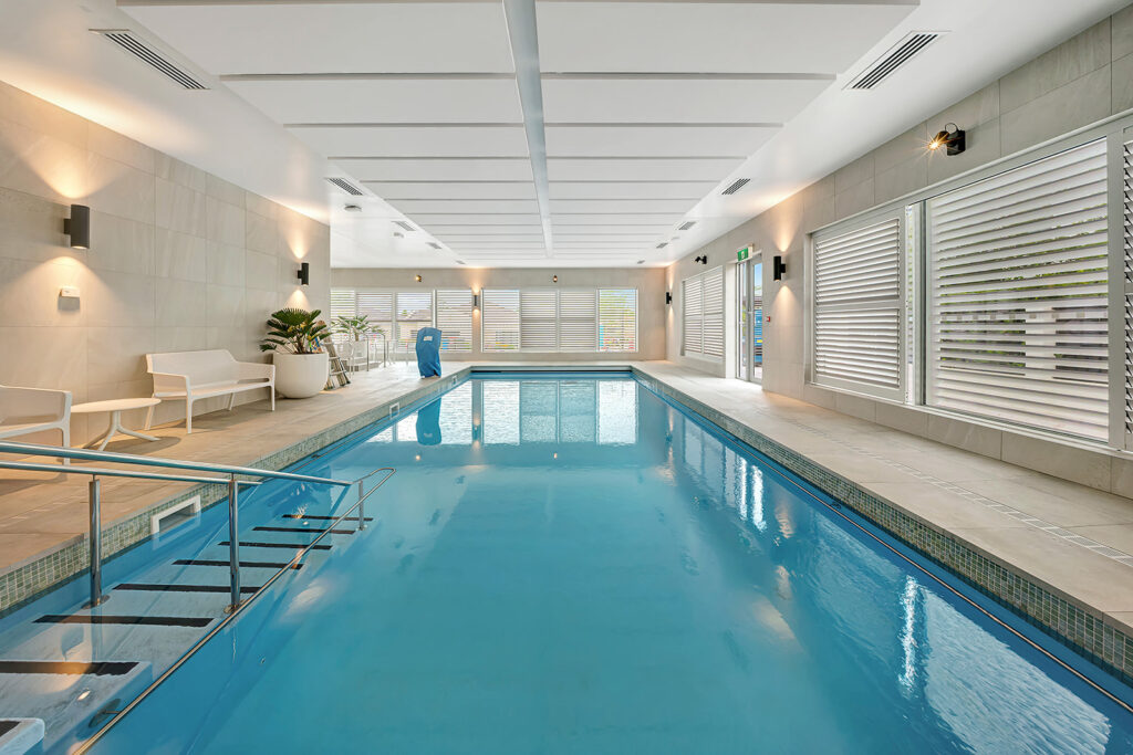 The Composite Group team worked on-site for several weeks, carefully preparing the concrete surfaces of both pools before applying the final fibreglass finish. The staged approach ensured optimal curing, structural integrity, and a high-quality end result suitable for daily use in a retirement living environment.